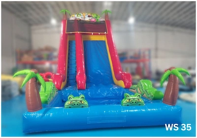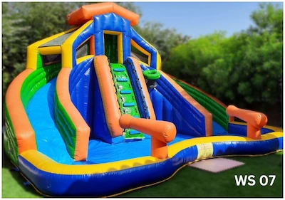 Your child’s safety comes first. All our inflatable water slides for rent are made from durable, soft-touch PVC and are fully cleaned before setup. We also do proper anchoring and use safety mats to provide stability and complete peace of mind for parents.